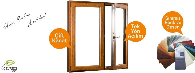 Çift açılım pencereler Avrupa stilinde ve iki farklı açılım fonksiyonuna sahiplerdir. Tıpkı kapılar gibi açılabilirler ve ayrıca çift yöne açılım aksesuar seçeneği ile kanadın üst kısmının içeriye doğru eğilerek aralanması ile mekanlarınızın kolayca havalandırılması maksatlı bir fonksiyona sahiptirler. Bir kol ile iki fonksiyon da kontrol edilebilir.